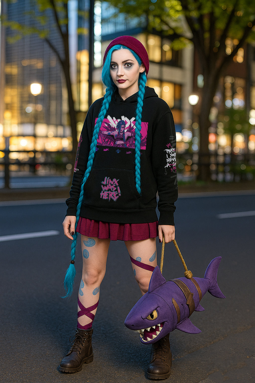 Bring chaos and color to your wardrobe with this **Arcane-inspired Jinx hoodie**, designed for true League of Legends fans. Whether you're hitting a convention or showing off your style on the streets, this unisex cosplay sweatshirt brings Jinx's rebellious energy to life.